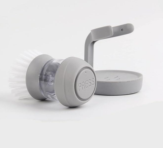 Design Suave: Feita com filamentos de nylon que não danificam revestimentos antiaderentes. Redução de Irritação: A escova com dispensador de sabão reduz a exposição direta ao detergente. Armazenamento Prático: Acompanha suporte para facilitar a secagem e organização. Eficiente: Armazena sabão para mais de 20 utilizações. Material: Plástico + nylon. Dimensões: 8,8 x 13,5 cm.
